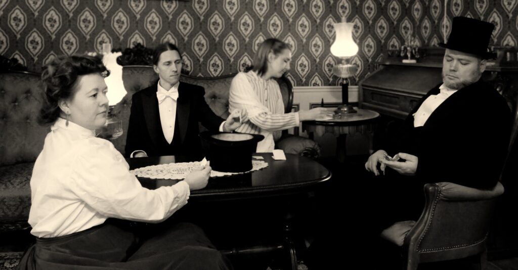 Upplägg: Vi samlas klockan 16 för workshop där rollerna i Sällskapet och rollerna i den blivande Odd Fellow-logen knyter kontakter. Därefter finns tid att byta om innan spelet börjar. Lajvet pågår sedan i ungefär fyra timmar.